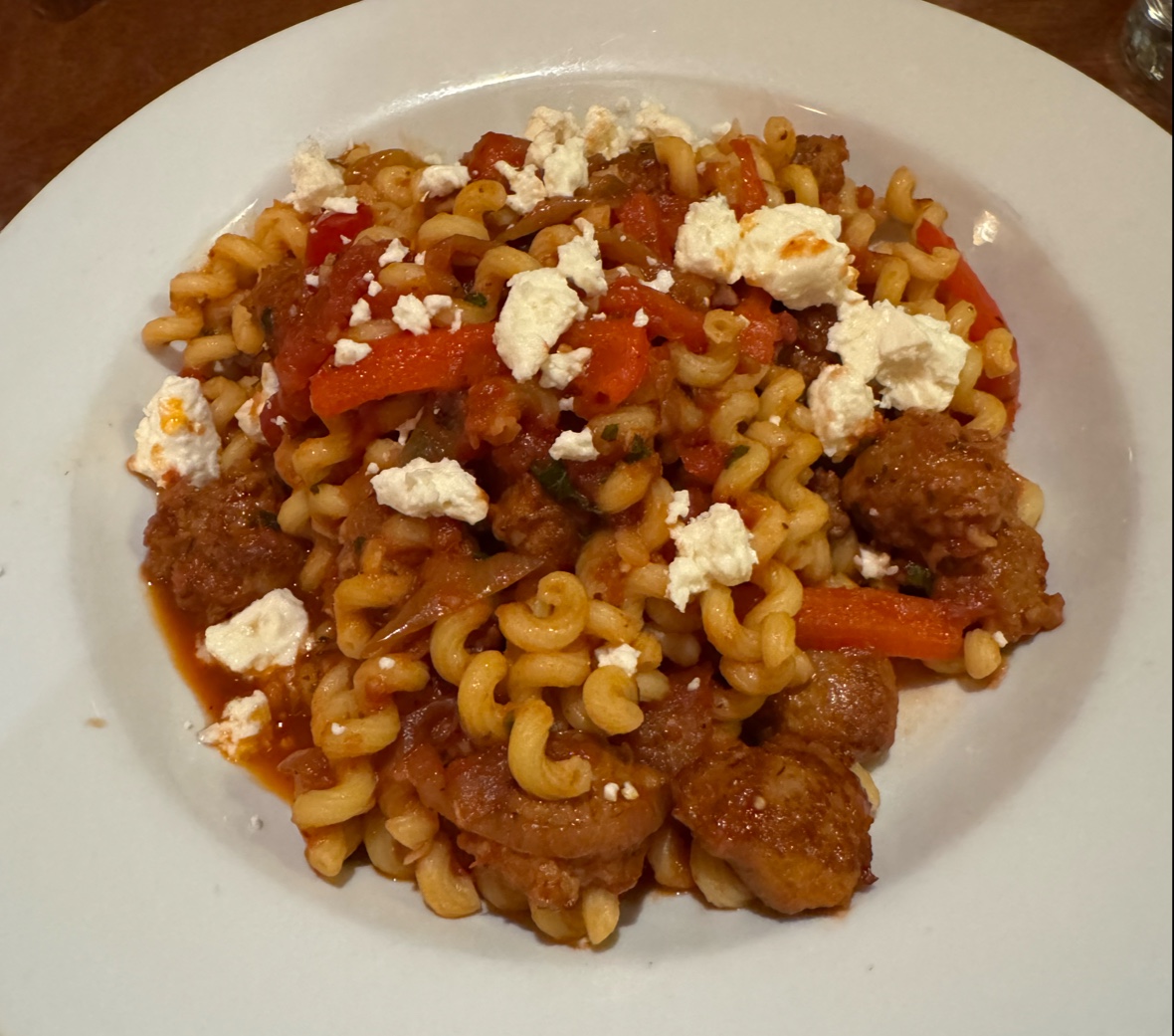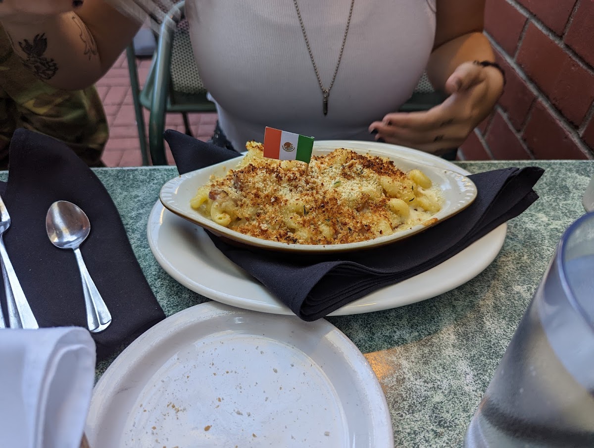 Nice view from outside patio next to the theater. Drinks were ok. Lasagna also was meh!! Seafood linguini was good. Too much cheese. Service was slow.