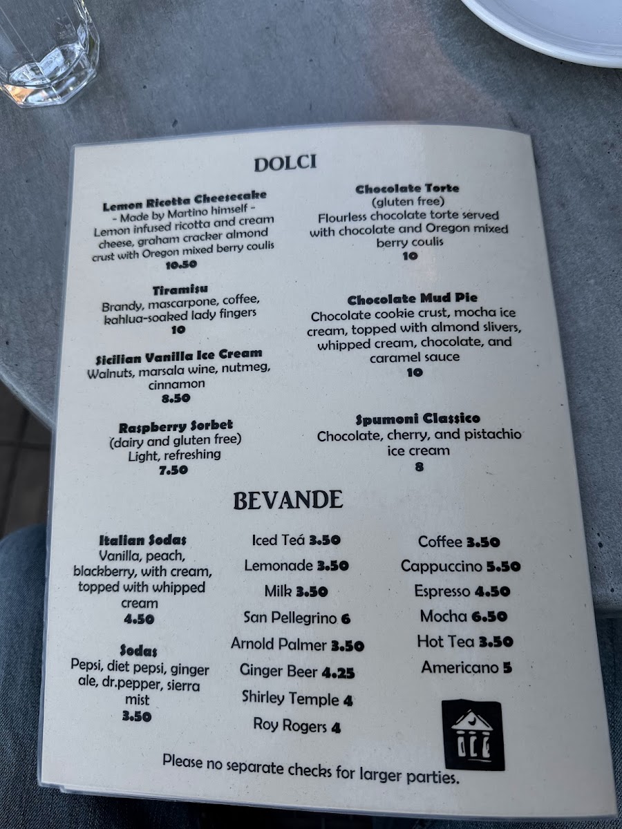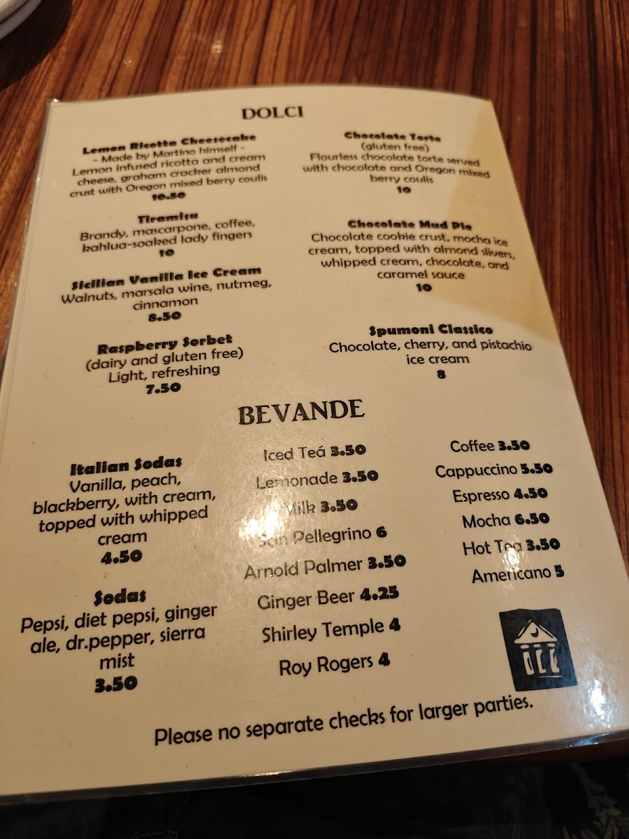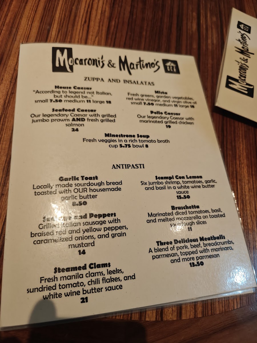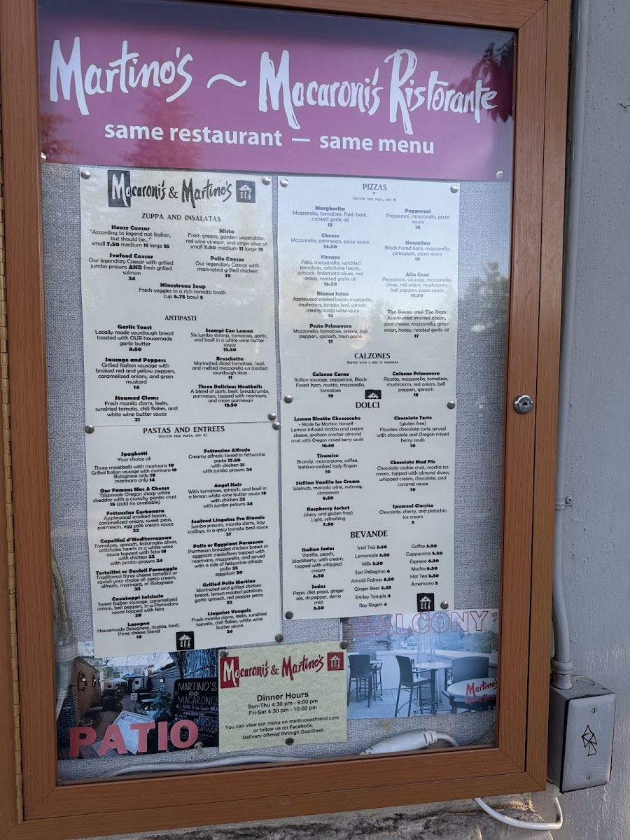 Martino's Upstairs Menu